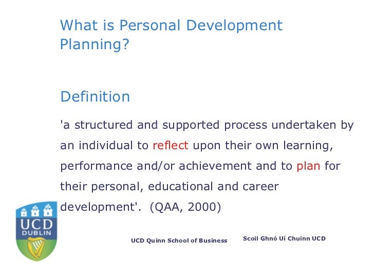 A personal development plan is “a combination of approaches, ideas and techniques that will help you manage your own learning and growth” (as defined by the chartered institute of personnel and development or cipd) pdp is a tool used by high achievers. Personal development is the conscious pursuit of personal growth by expanding self-awareness and knowledge and improving personal skills. personal development includes activities that improve awareness and identity, develop talents and potential, build human capital and facilitate employability, enhance the quality of life and contribute to the realization of dreams and aspirations. Personal development planning is a structured process that helps to create an action plan for self-improvement, growth, and development.. this goal-setting and planning are based on reflection, values, achievements, performances, learning, and awareness within the context of personal relationships, educational development, and career growth.